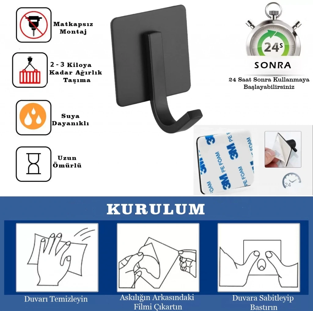 ARDİNİ KENDİNDEN YAPIŞKANLI ASKILIK MAT SİYAH 03 PAKETTE 5 ADET