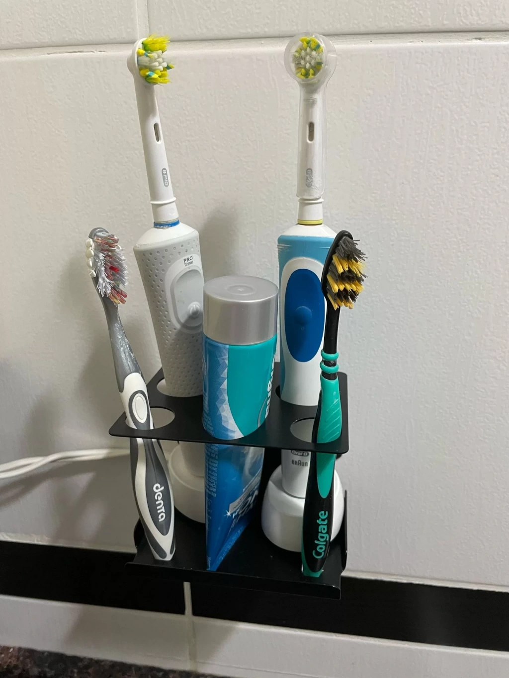 ARDİNİ YAPIŞKANLI VE VİDALI ŞARJLI DİŞ FIRÇALIK TUTUCU MACUNLUKLU MAT SİYAH