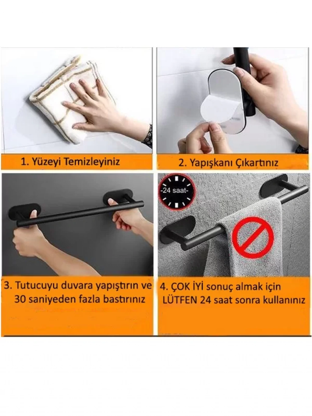 ASKILIK YAPIŞKANLI VE VİDALI İNCE BELLİ ÜÇLÜ MAT SİYAH