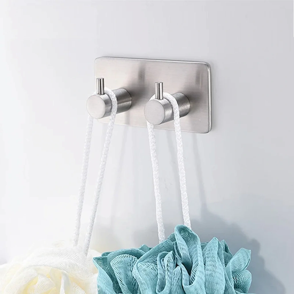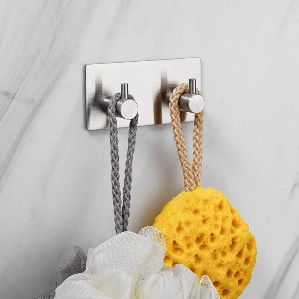 ASKILIK YAPIŞKANLI DİKDÖRTGEN ÇUBUKLU 2 KANCALI PASLANMAZ ÇELİK (RENK KROM) PAKETTE 2 ADET
