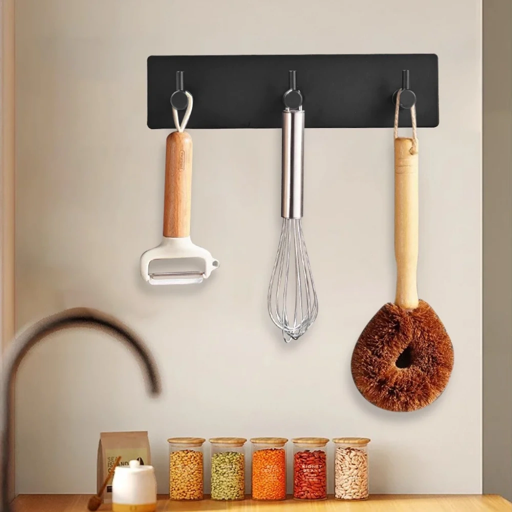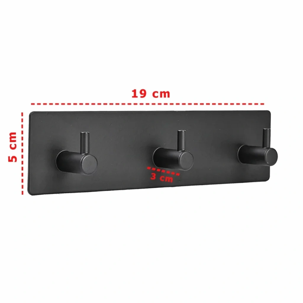 ASKILIK YAPIŞKANLI DİKDÖRTGEN ÇUBUKLU 3 KANCALI MAT SİYAH