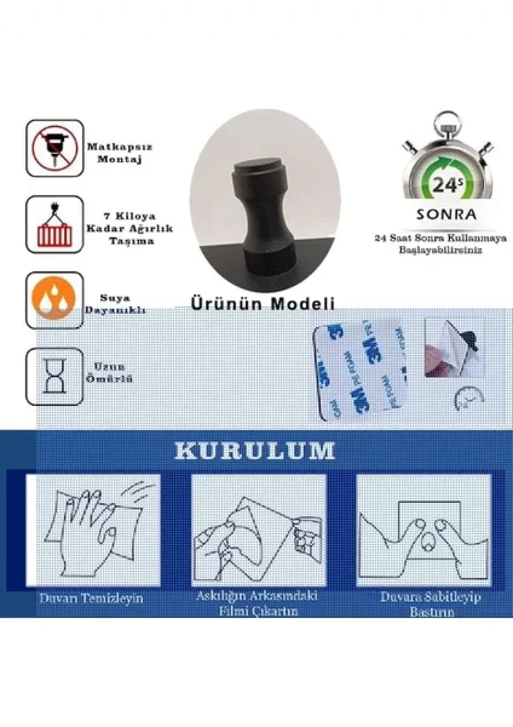 ASKILIK YAPIŞKANLI VE VİDALI MANTAR ALTILI MAT SİYAH