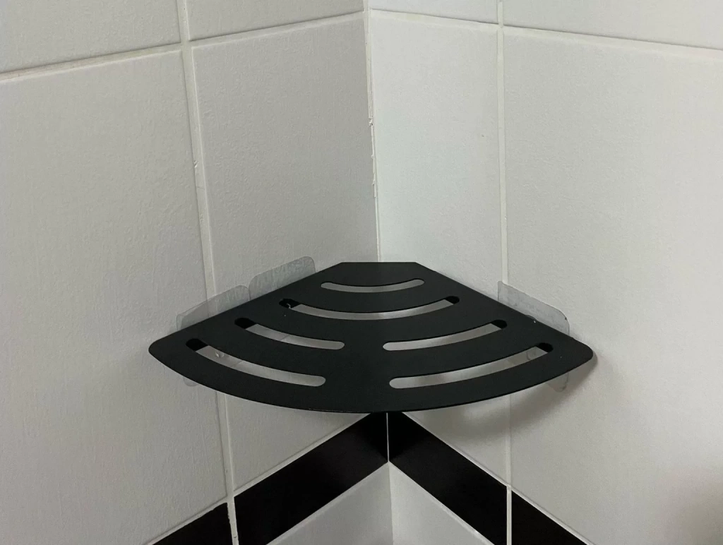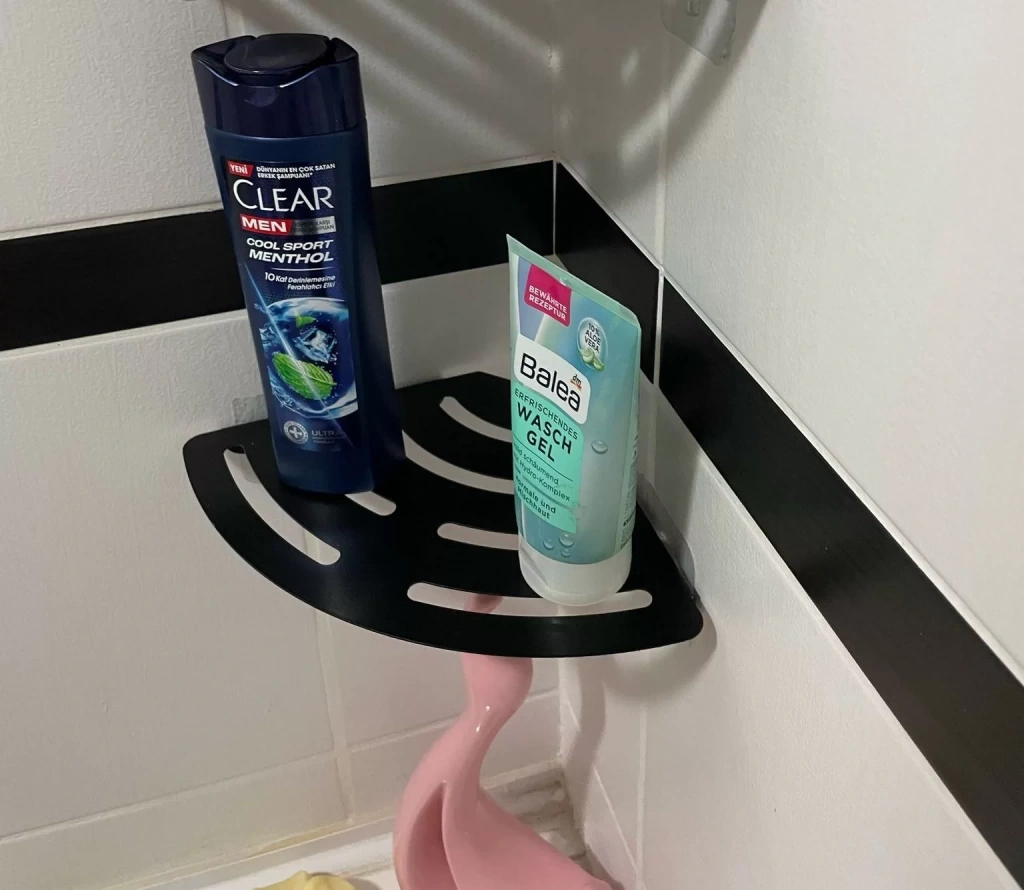 ŞAMPUANLIK DUŞ RAFI YAPIŞKANLI VE VİDALI KÖŞELİ VE SETLİ MODEL MAT SİYAH