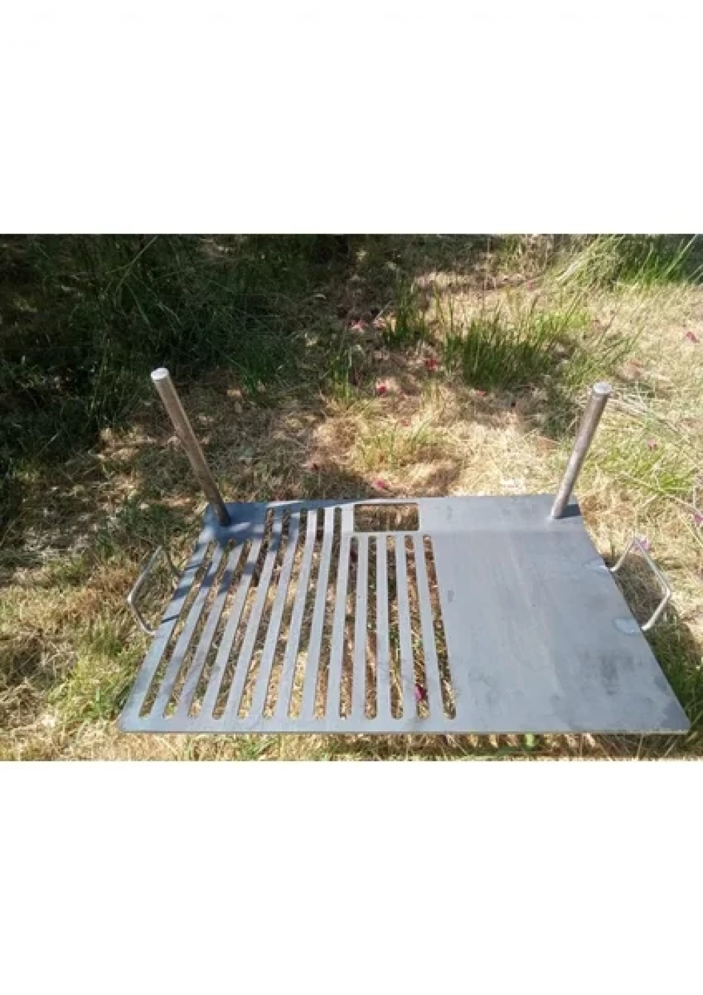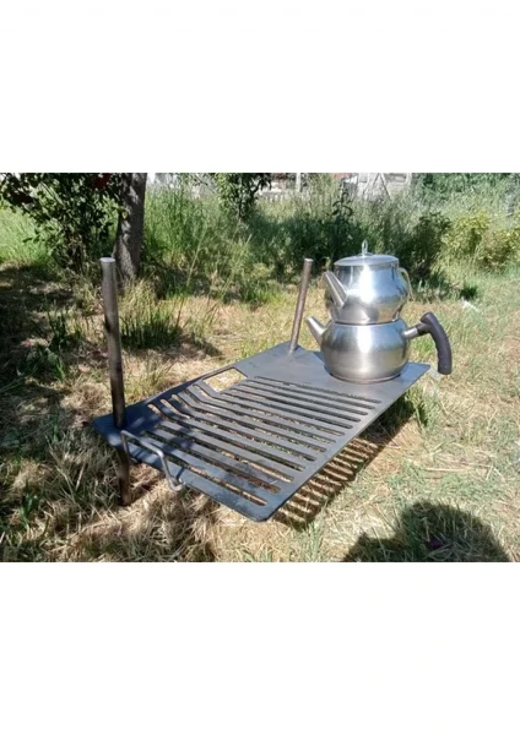 MANGAL IZGARA DEMLİK VE HAMBURGER BÖLMELİ PRATİK 38 X 58 CM 5MM SAC İKİ CUBUKLU