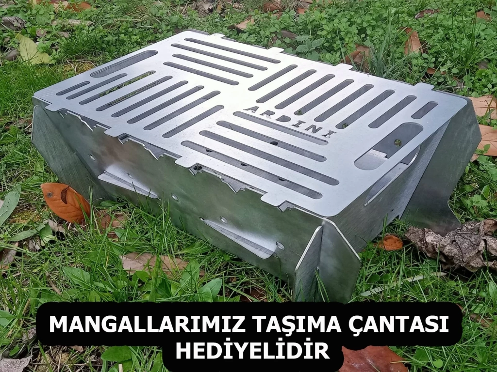 MANGAL KATLANIR PRATİK PORTATİF TAMAMI PASLANMAZ ÇELİK 41 X 25 CM ÇANTA HEDİYELİ