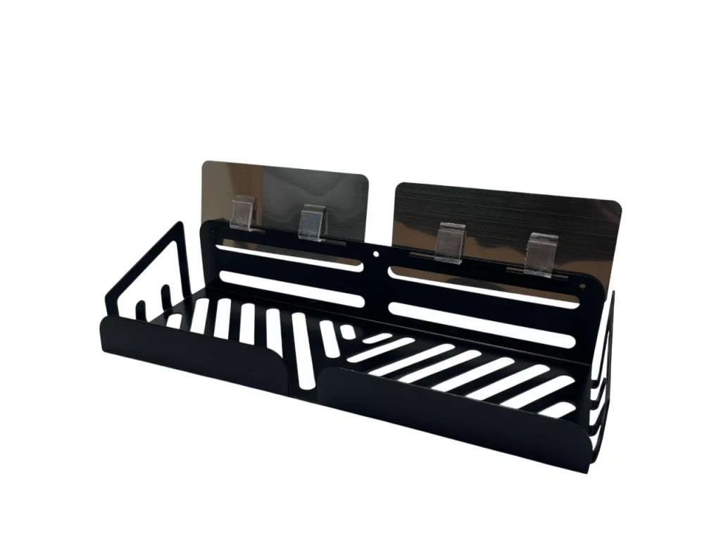 KİTARO KENDİNDEN YAPIŞKANLI ŞAMPUANLIK RAFI MAT SİYAH İKİ KATLI
