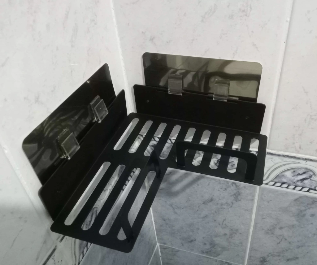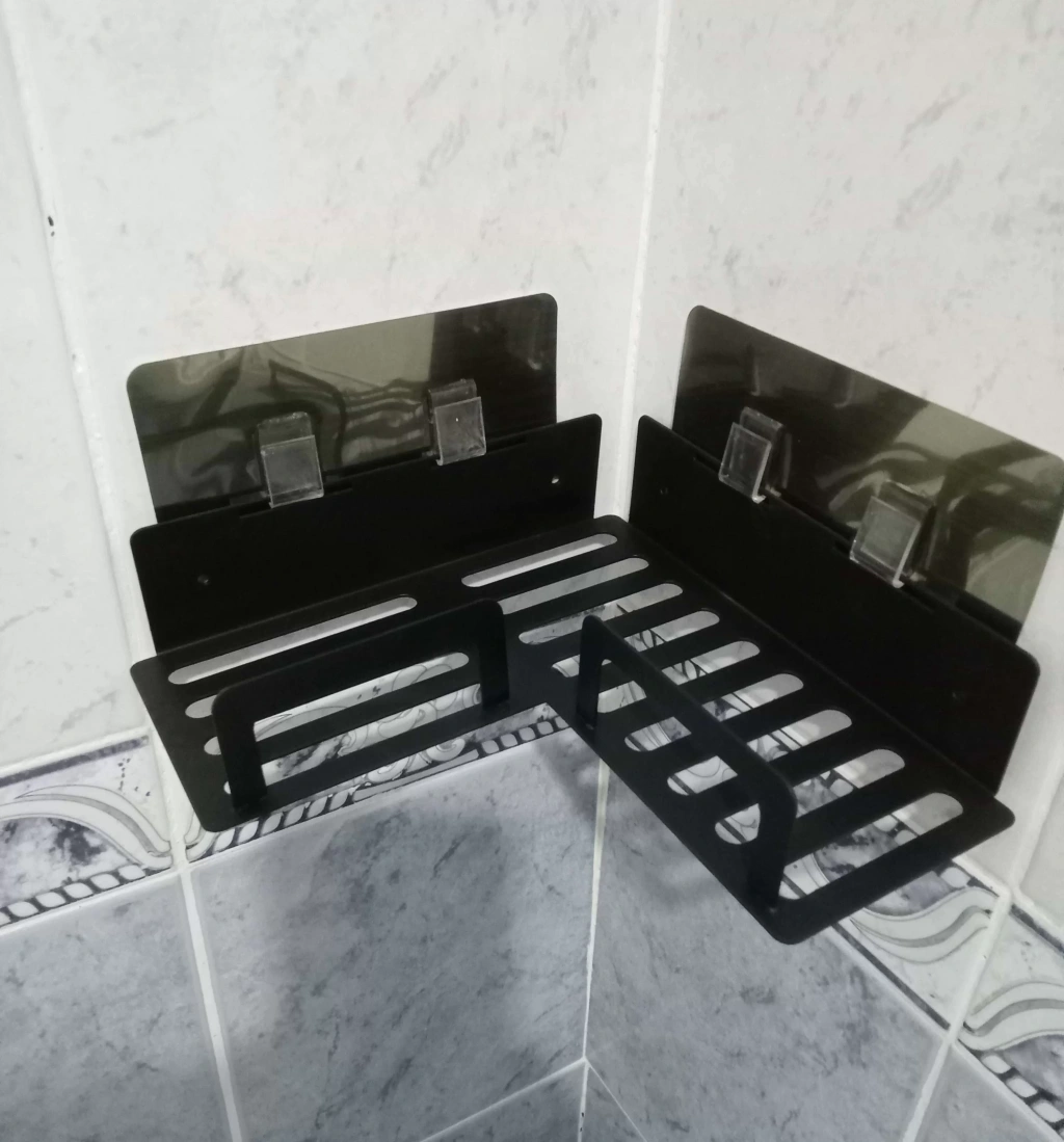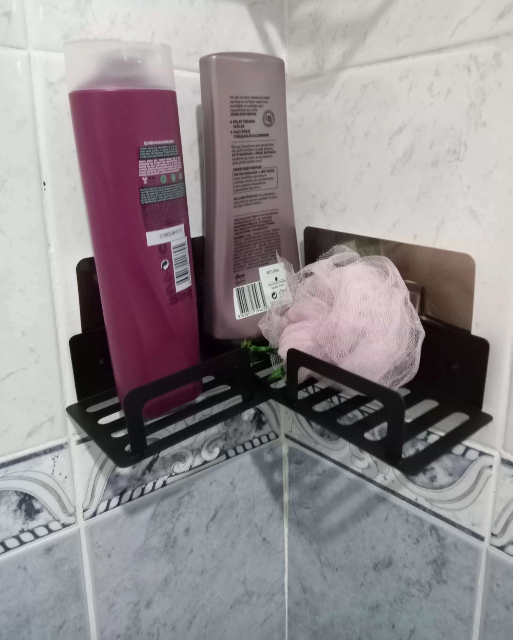 ŞAMPUANLIK DUŞ RAFI YAPIŞKANLI VE VİDALI KÖŞELİ VE SETLİ MODEL MAT SİYAH