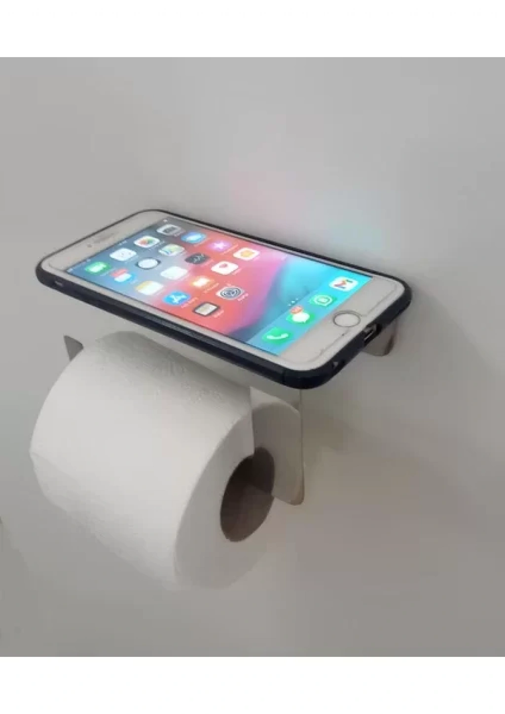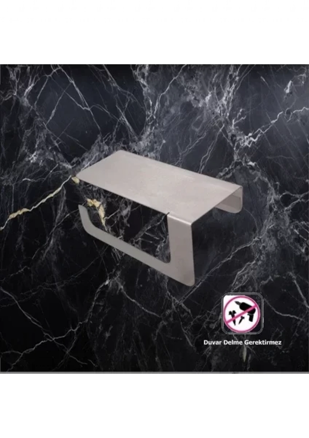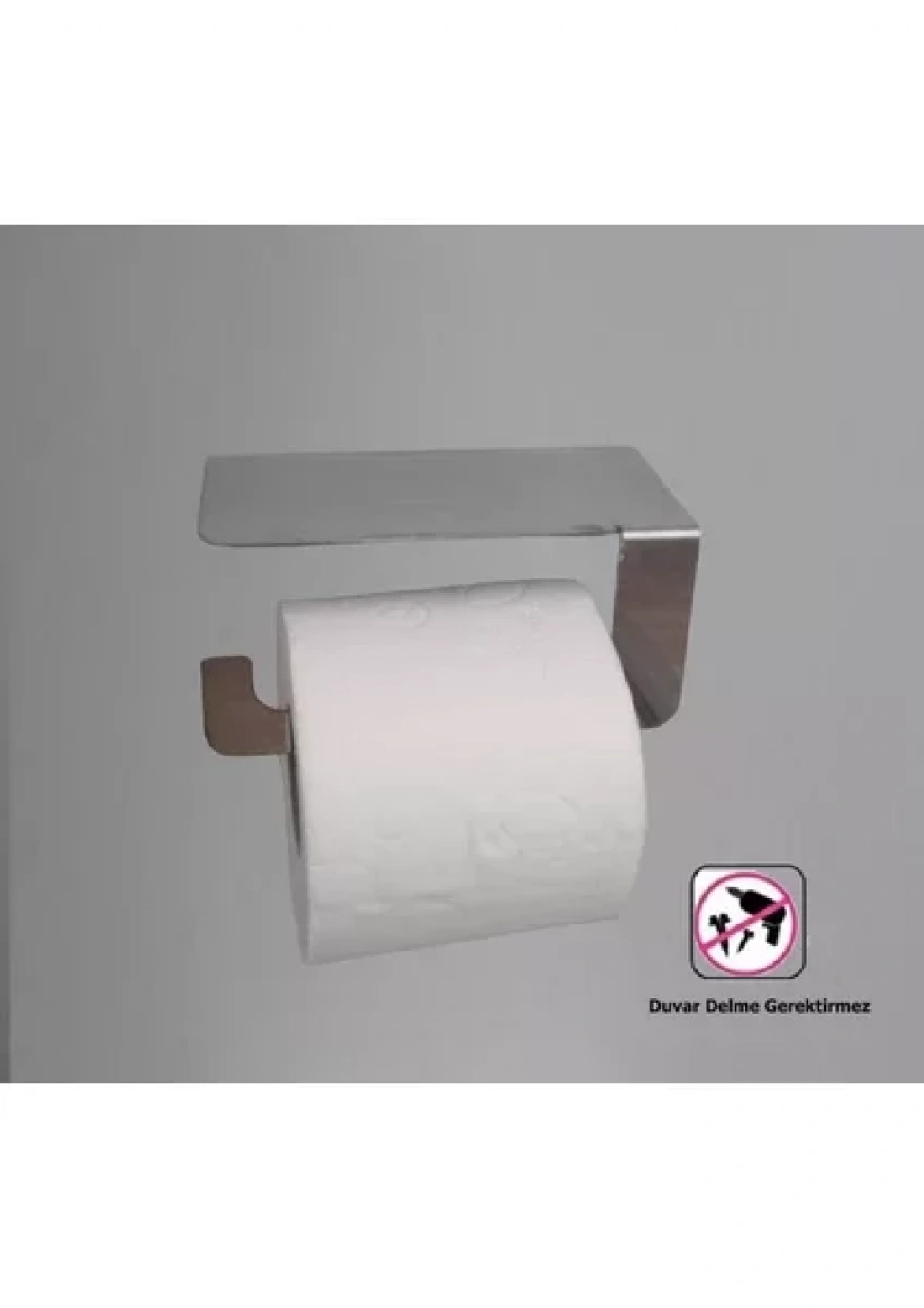 TUVALET KAĞITLIĞI YAPIŞKANLI VE VİDALI TELEFON RAFLI KROM
