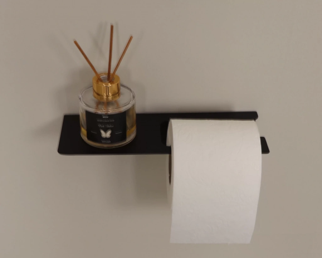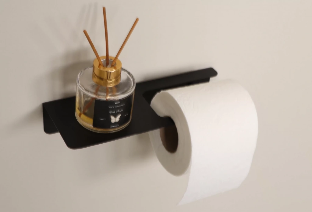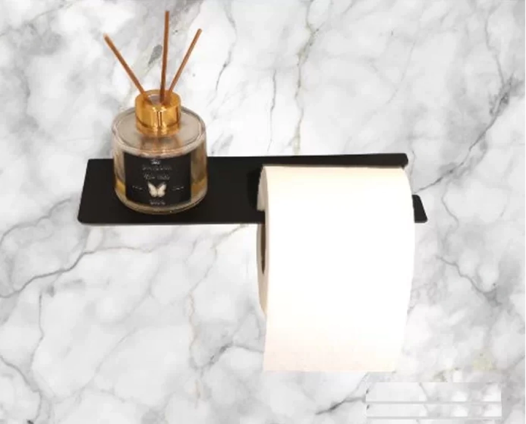 TUVALET KAĞITLIĞI YAPIŞKANLI VE VİDALI TELEFON RAFLI MAT SİYAH